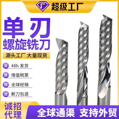硬霸3.175單刃螺旋銑刀優質鎢鋼雕刻機亞克力pvc單刃銑 刀數控刀具